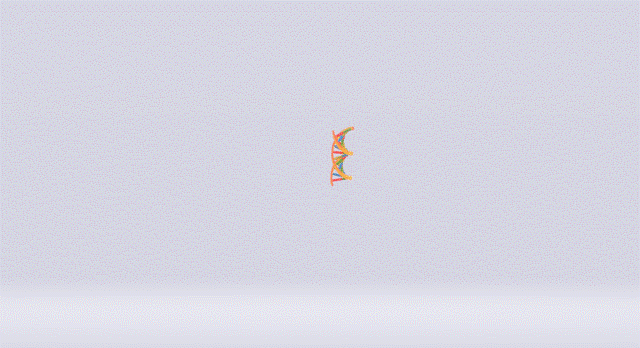 Fakat 2 yaprağın birbirine tutundurulup dairesel biçimde hareket ettirilmesi kavramı 3 boyutlu olduğu için buradaki şekil birbirine tamamen bağımlı DNA sarmalı şeklinde görüntüleniyor.